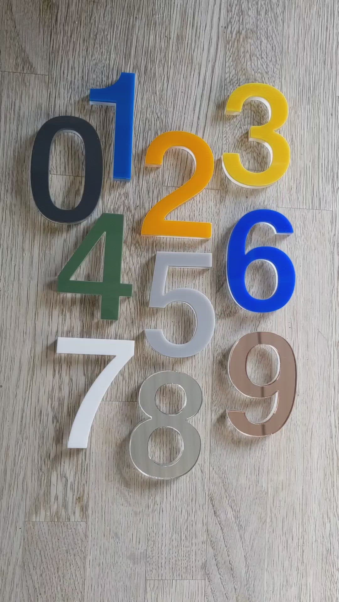 3D Colourful acrylic door numbers in the popular font Helvetica at 75mm high.