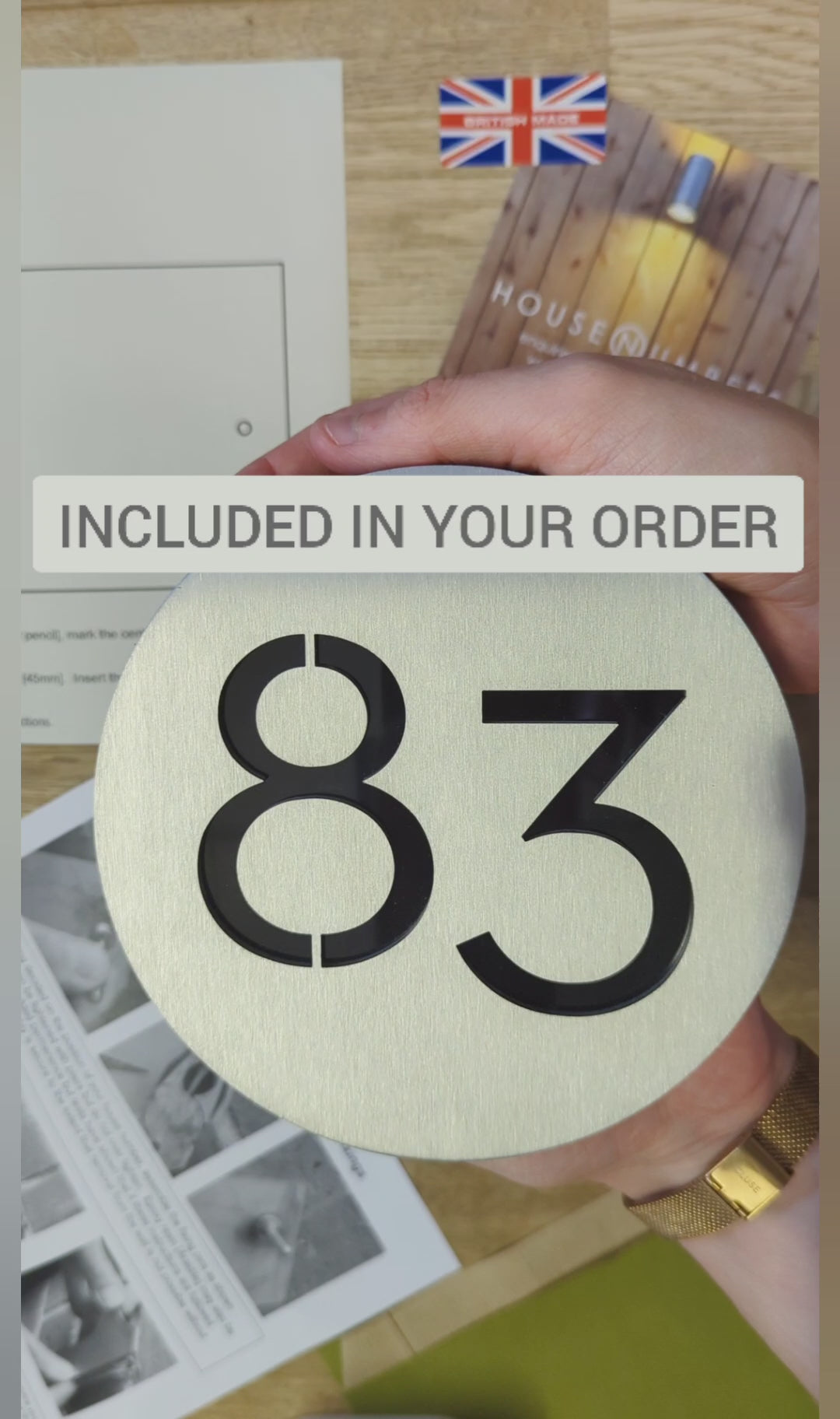 The number plaque comes complete with a black or colour backing plate, our unique secret fixing system, a drilling template and pictorial instructions to make installation easy.