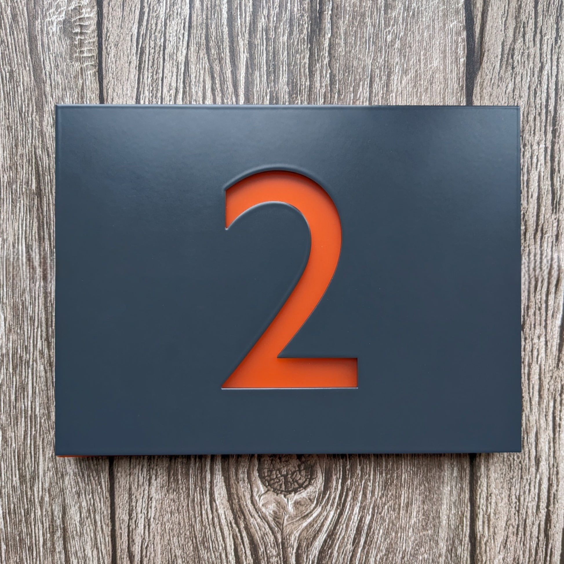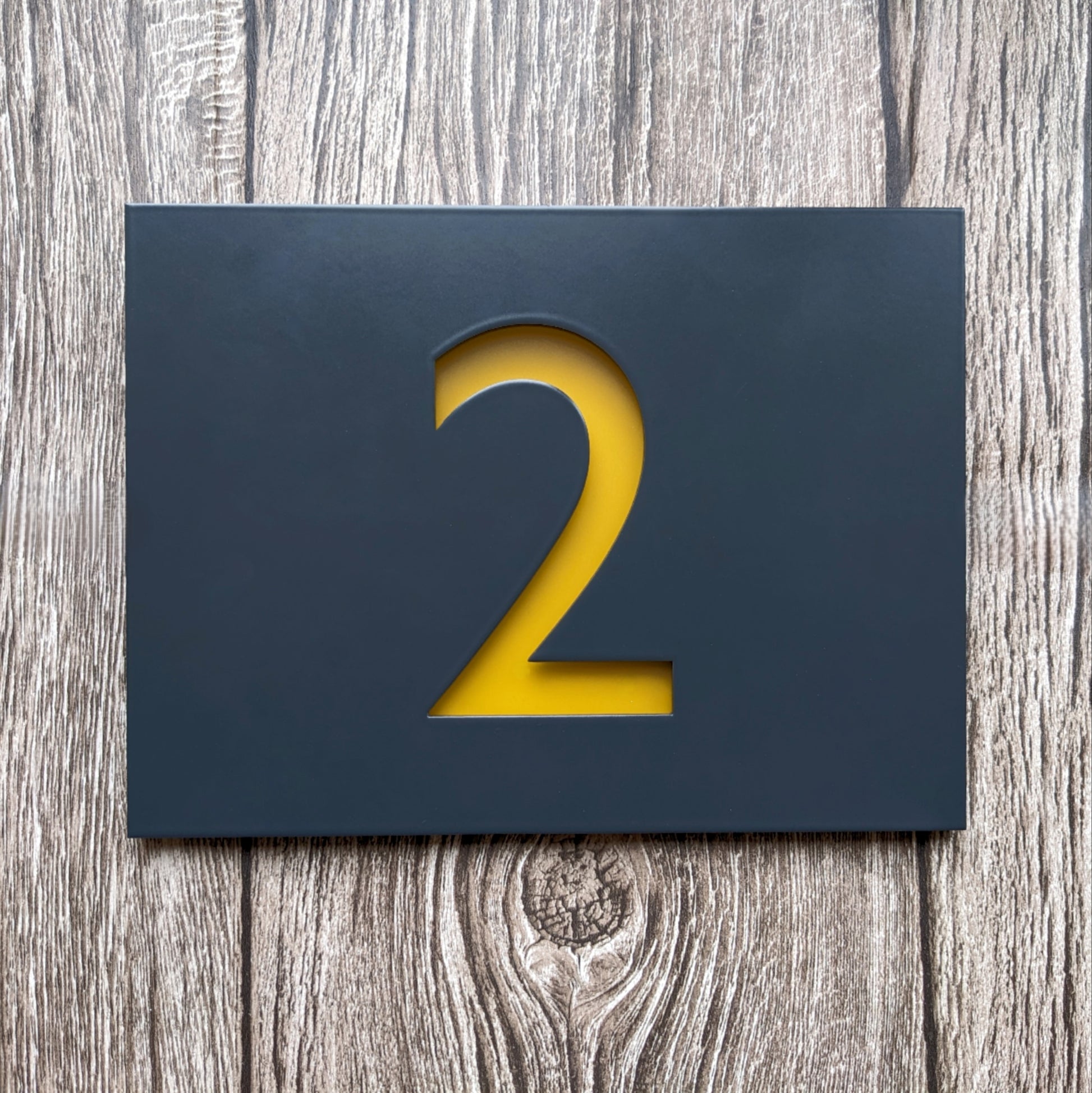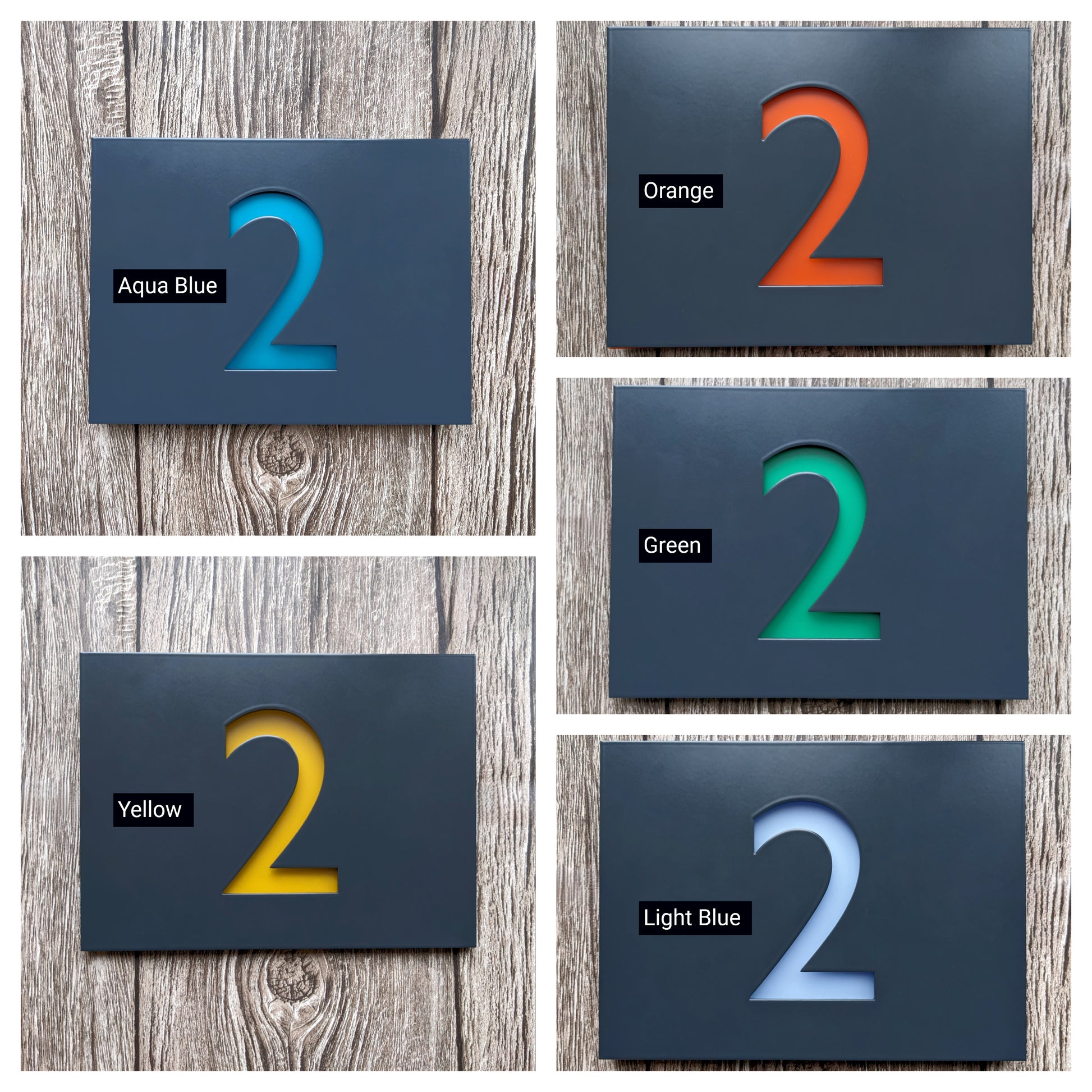 The sample images of the number 2 are all of a 7016 Anthracite Grey powder coated sign.