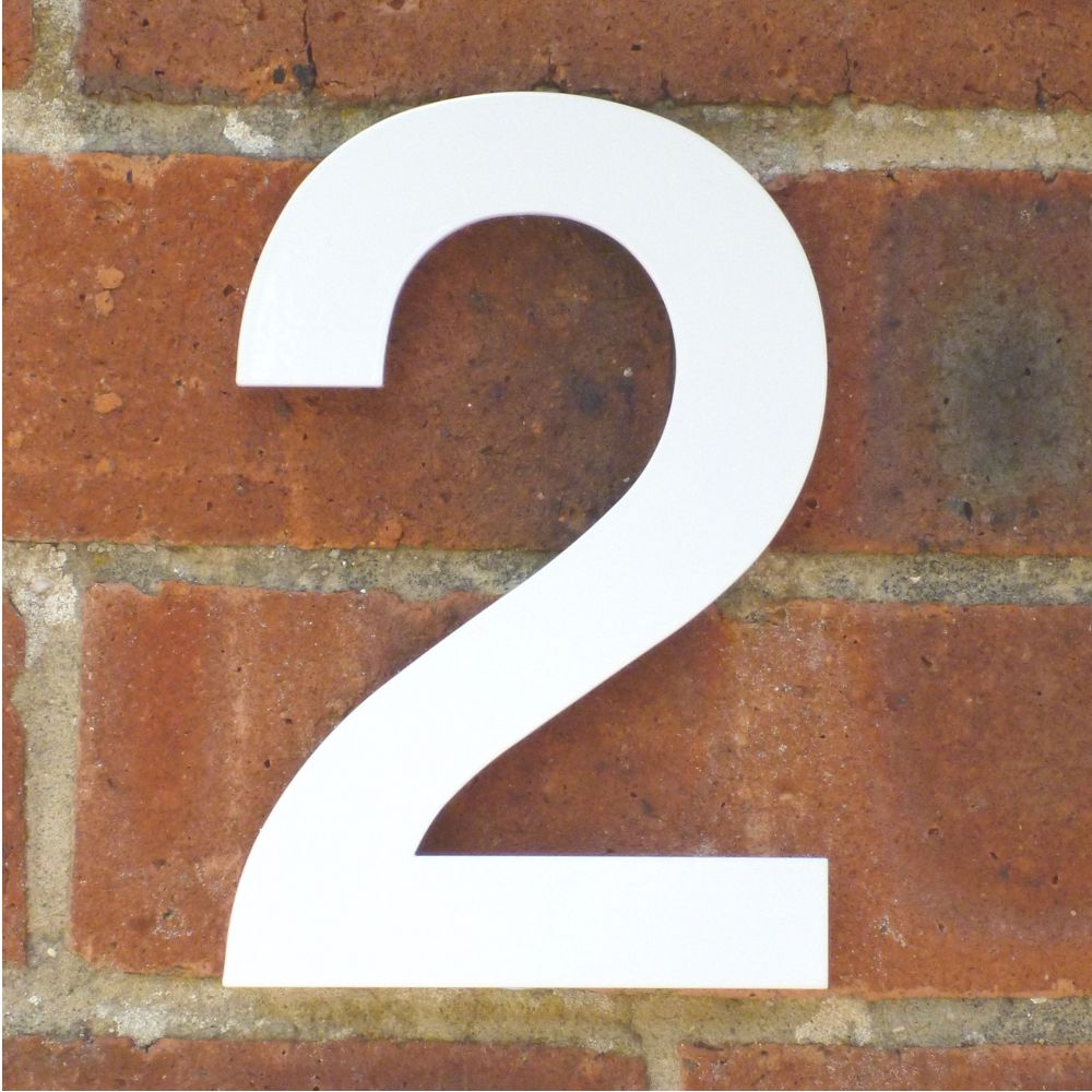 White house number 2 with hidden fixings in our very popular helvetica font. 150mm high.